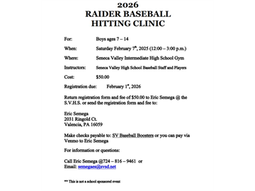 Seneca Valley Baseball & Softball Association PO Box 1599 Cranberry Twp, Pennsylvania 16066